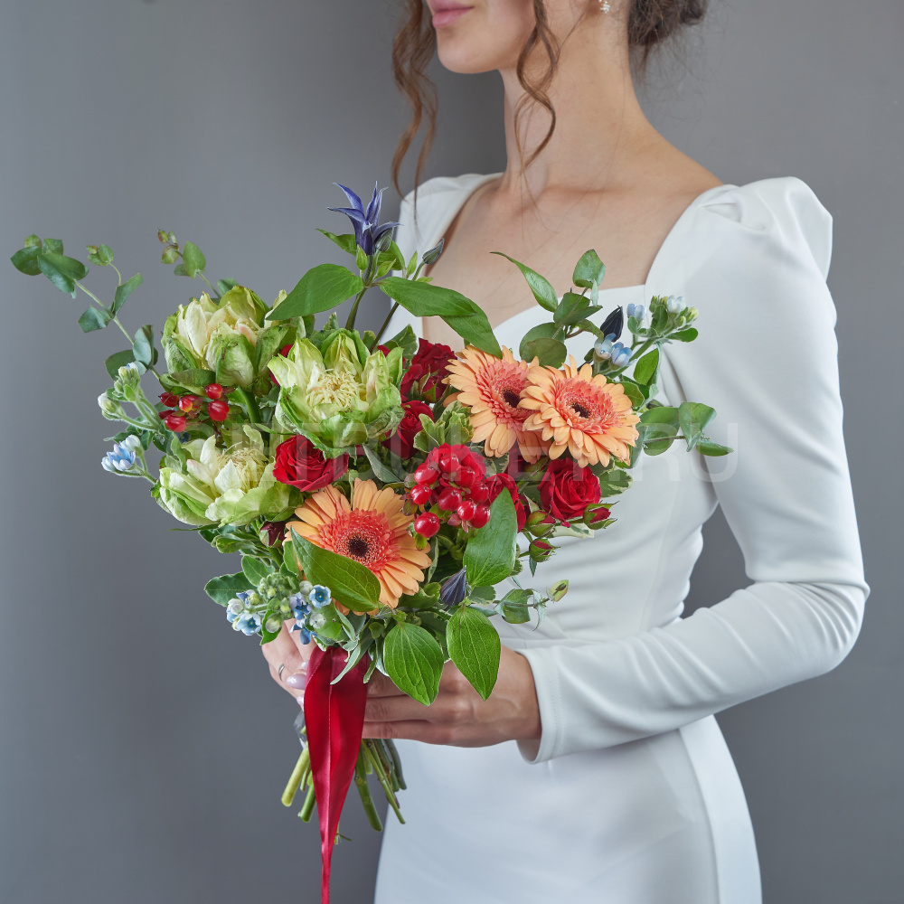 Возможны минимальные отличия букета от фотографии и допустимы отличия по цветовой гамме, так как цветы являются природным материалом и собираются вручную