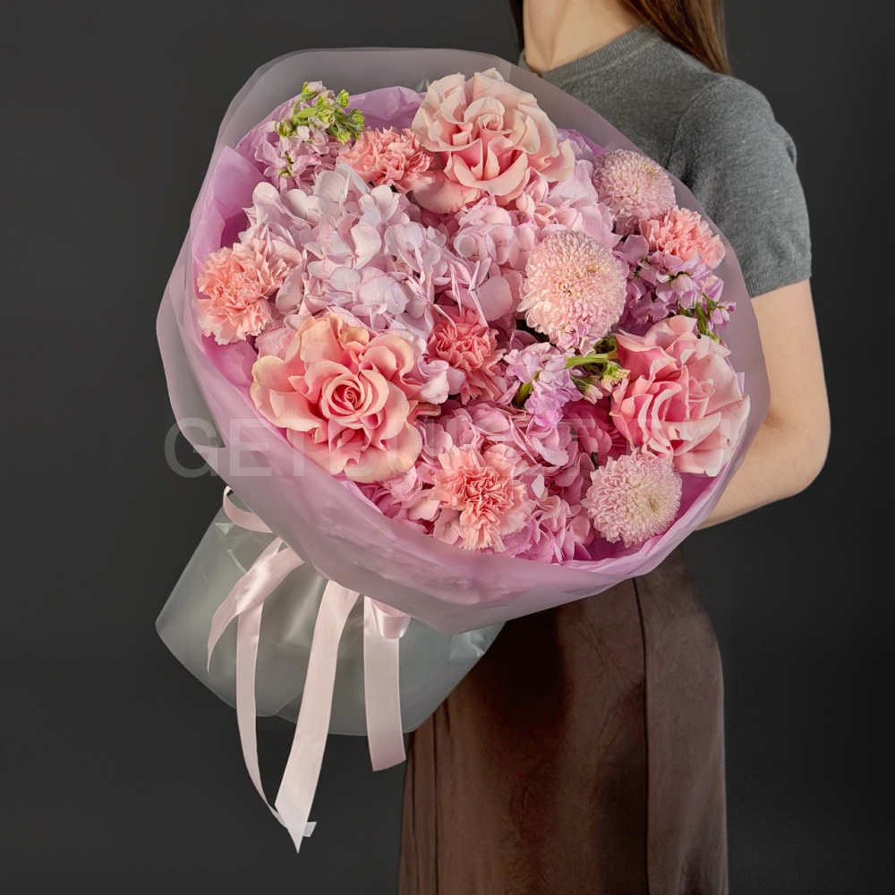 Цветочное облако из микса розовых цветов
