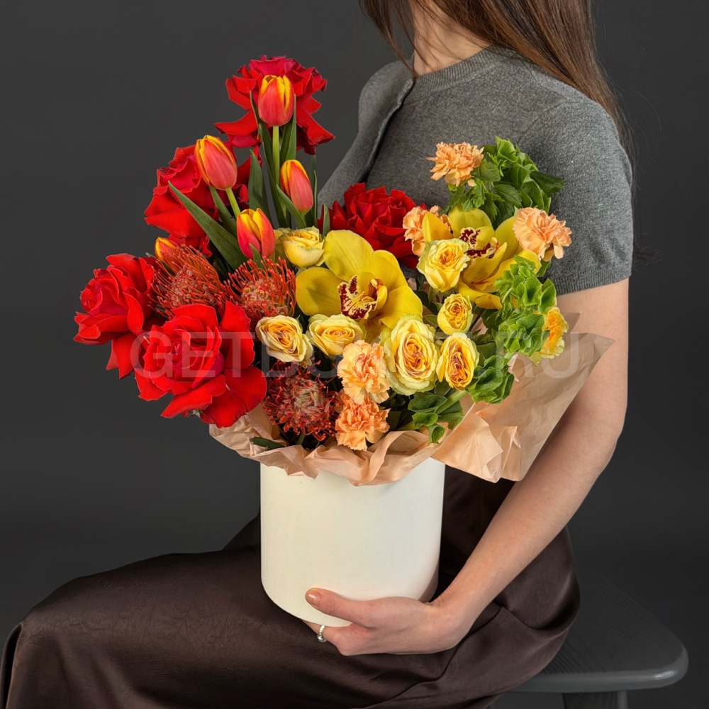 Цветочная композиция из роз, ранункулуса и нерине в шляпной коробке8 540 ₽Цветочная композиция из роз, ранункулуса и нерине в шляпной коробке 8 540 ₽ -