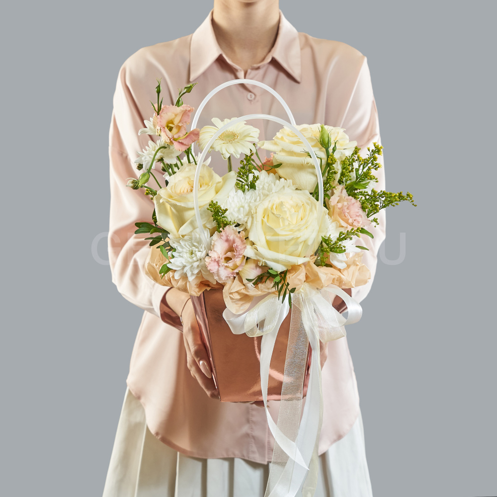 Цветочная композиция с розами, хризантемой и танацетумом в сумочке2 980 ₽Цветочная композиция с розами, хризантемой и танацетумом в сумочке 2 980 ₽ -