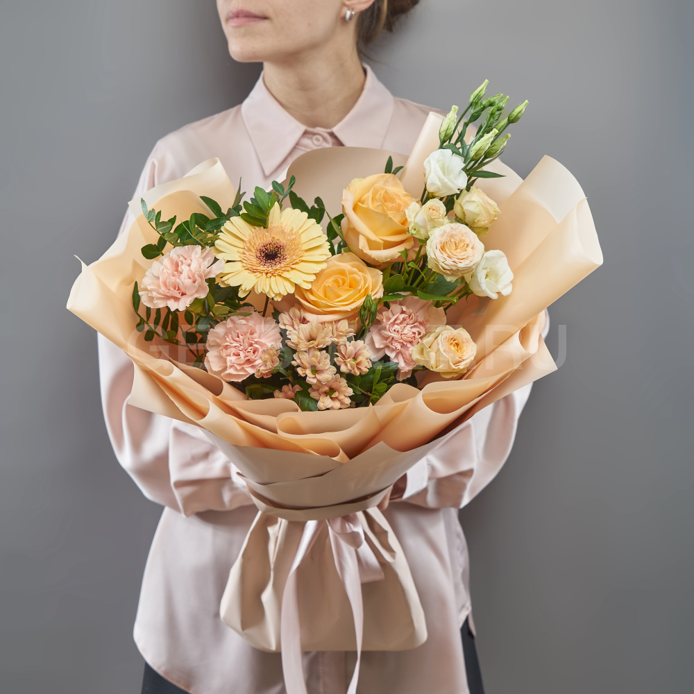 Возможны минимальные отличия букета от фотографии и допустимы отличия по цветовой гамме, так как цветы являются природным материалом и собираются вручную