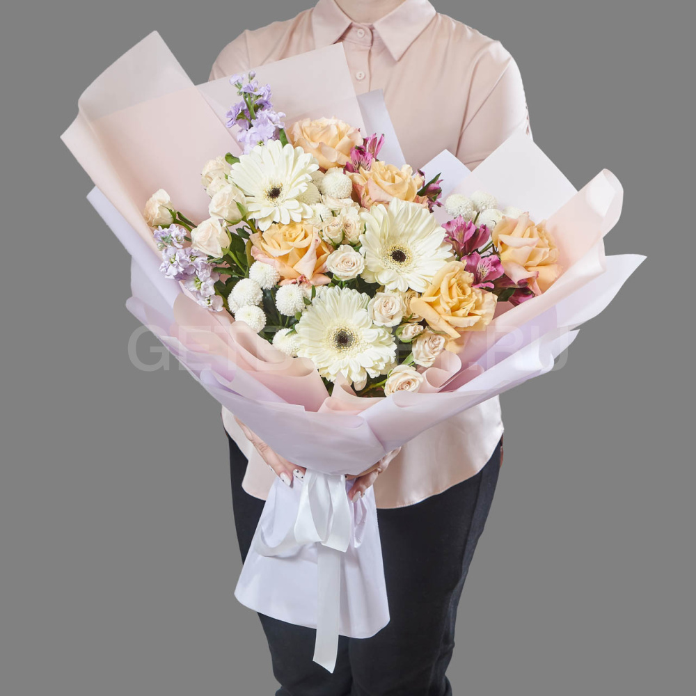Букет из микса бело-розовых цветов4 190 ₽Букет из микса бело-розовых цветов 4 190 ₽ -