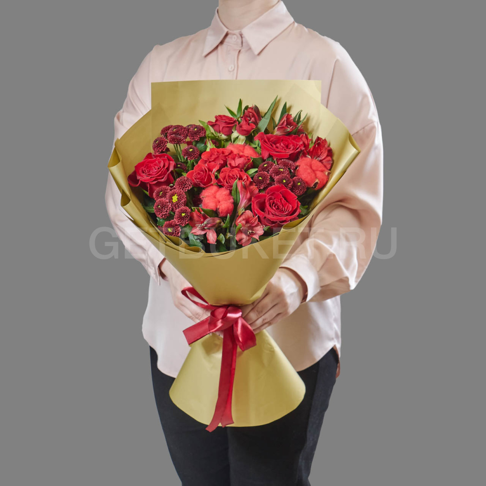 Букет из красных гербер, роз и гвоздик8 410 ₽Букет из красных гербер, роз и гвоздик 8 410 ₽ -