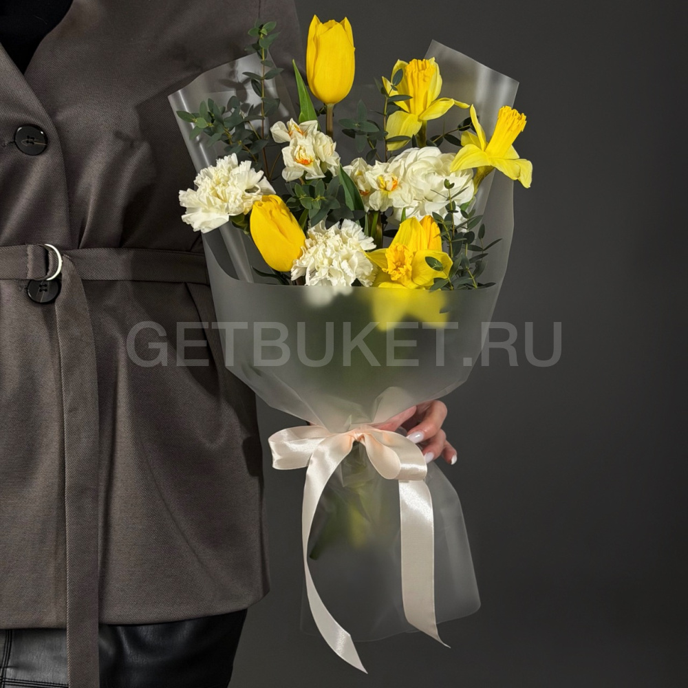 Букет из нарциссов, тюльпанов и форзиции4 300 ₽Букет из нарциссов, тюльпанов и форзиции 4 300 ₽ -